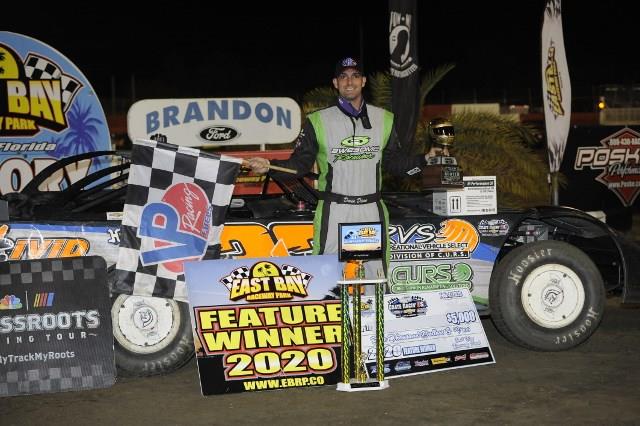 TAMPA, FL – Devin Dixon of Apollo Beach, FL won a thrilling 50-lap Newsome Raceway Parts Crate Racin’ USA Dirt Late Model Series Winter Shootout race on Saturday night as a part of the 44th Annual East Bay Raceway Park Winternationals. Dixon led early and late driving the CURS Capital Race Car to the $5,000 victory in a race that saw five lead changes.