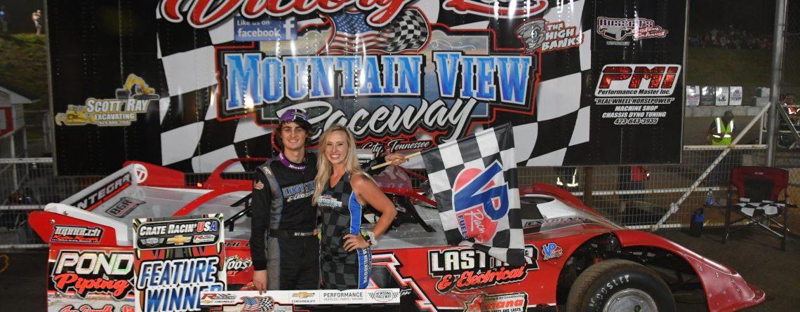 Herrington took the lead at the start of the race from the pole position followed by Dunn, Bryson Mitchell, Goodman, and Parkhurst. Ethen Hunter of Harrison, TN in the ETSB Construction Special got by Parkhurst for the fifth spot on lap five. Herrington caught the cars on the tail end of the lead lap on lap seven in the close confines of Mountain View Raceway.