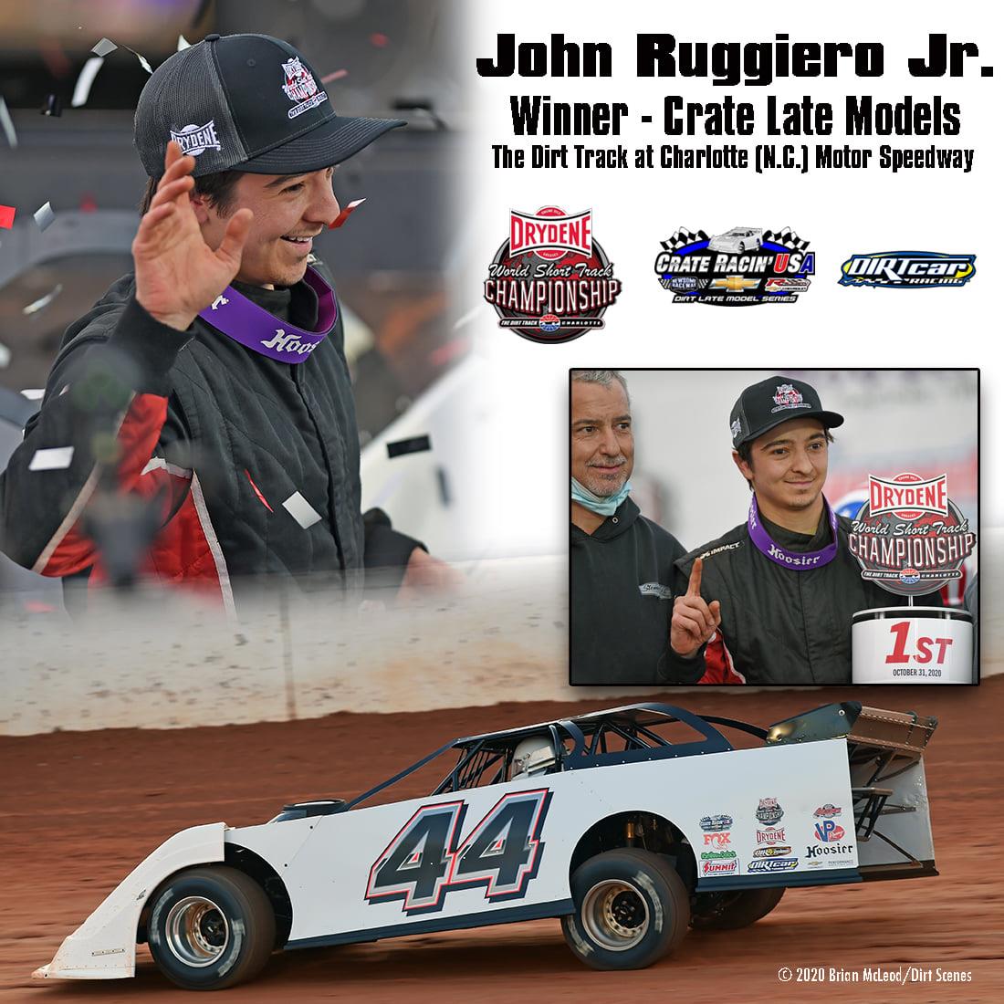 CONCORD, N.C. (Oct. 31) — It wasn’t very difficult to pick out John Ruggiero Jr.’s entry as the Crate Late Model portion of the Drydene World Short Track Championship took place Saturday night at the Dirt Track at Charlotte, which is located across the street from 1.5-mile Charlotte Motor Speedway.