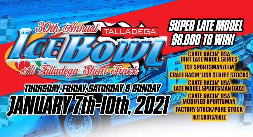 EASTABOGA, Ala. — Yep! It’s close to that time again. Four different Crate Racin’ USA divisions will be featured in the 30th annual Ice Bowl slated Jan. 7-10 at high-banked Talladega Short Track in Eastaboga, Ala.
