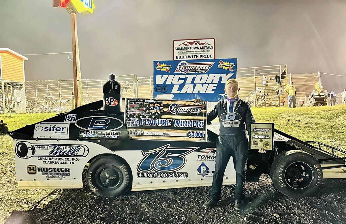 Hohenwald, TN (August 25, 2024) – Clayton Miller of Elkton, KY, put on a spectacular display on Saturday night, winning the $3,000-to-win Tommy Hickerson Memorial at Tennessee National Raceway. This Tri-State Open Wheel Modified Series event saw Miller lead all 35 laps of the main event, marking his dominance on the track and securing his position as the fifth different winner of the 2024 season for the series. Miller earned the top spot with Tyler Wood and Logan Hickerson round out the podium on Saturday night.