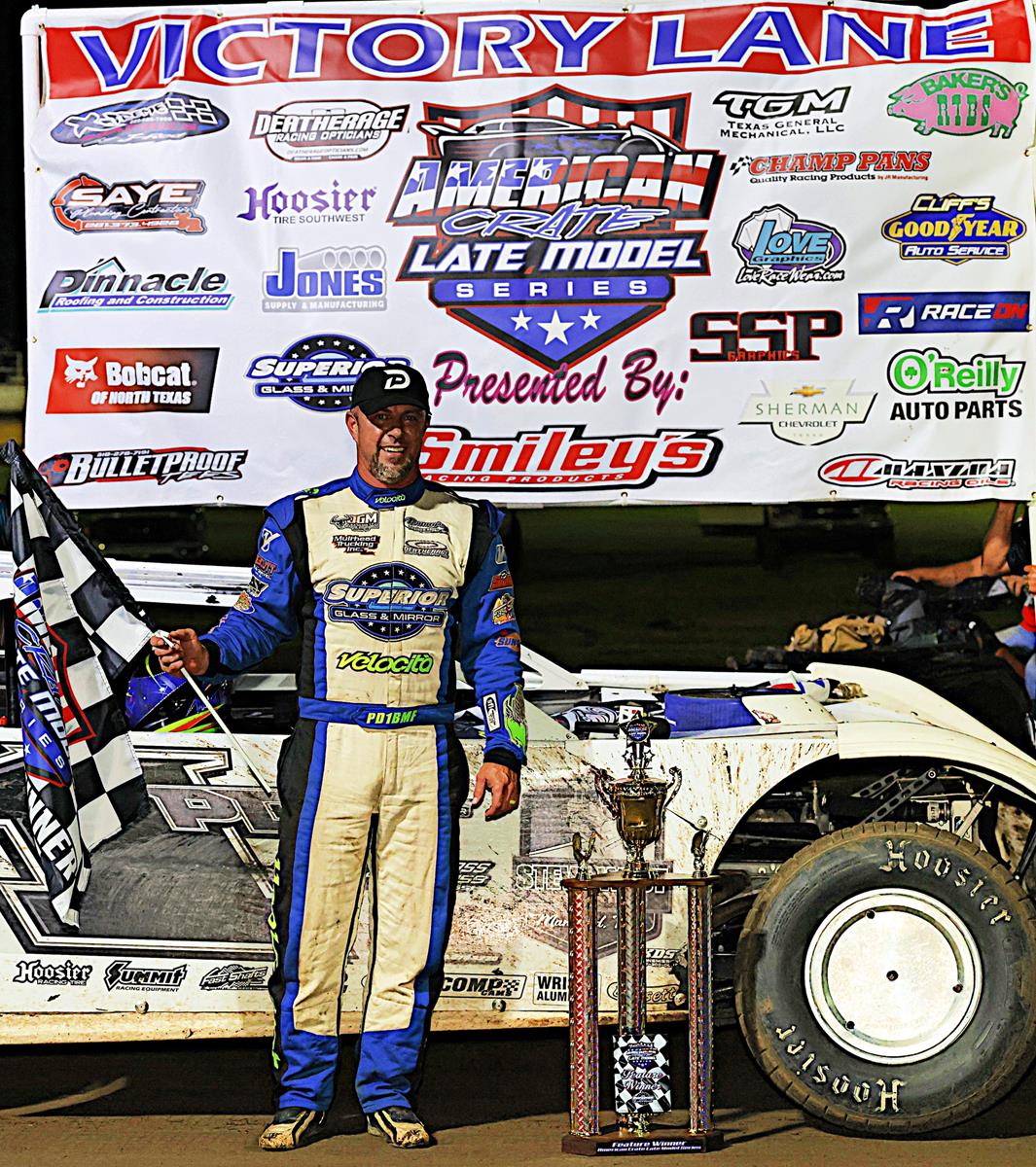 (Ardmore, OK - May 18, 2025) - The American Crate Late Model Series made its 11th stop at Southern Oklahoma Speedway on Saturday night, and once again, the fans were treated to a thrilling display of dirt track racing. Patrik Daniel of Wills Point, TX etched his name into the history books by becoming the sixth different winner at the Ardmore, OK oval—claiming victory in Round 4 of the 2025 season. It's Daniel's eighth career American Crate Late Model Series win and his first since July of 2023 at Hunt County Raceway.